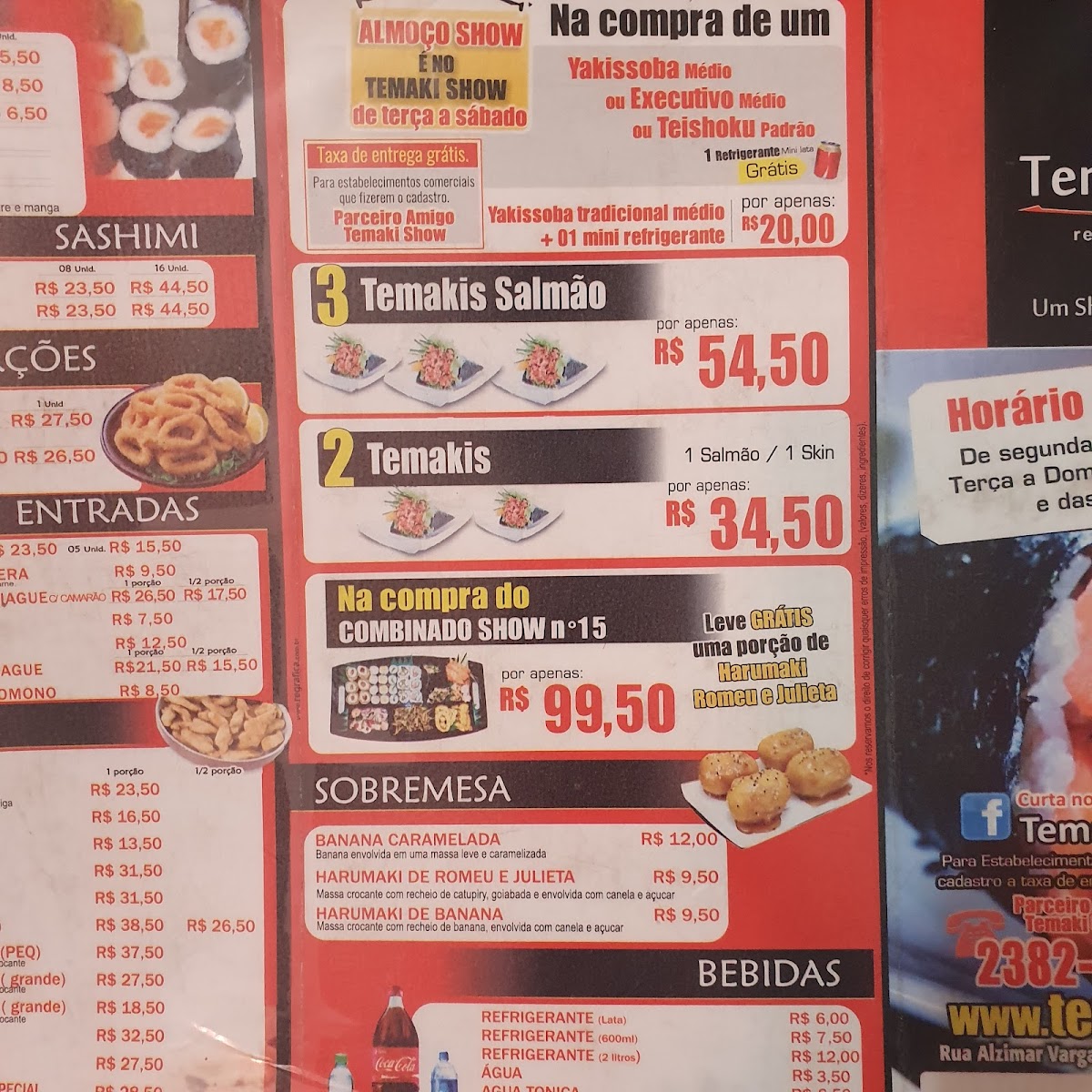 With a phone number of +55 11 2382-0850, it’s easy to reach out and place an order for takeout or inquire about their offerings. Temaki Show Parque Continental I isn’t just a meal; it’s an experience that invites you to immerse yourself in the vibrant flavors of Japan while enjoying the warm hospitality of Brazil.
